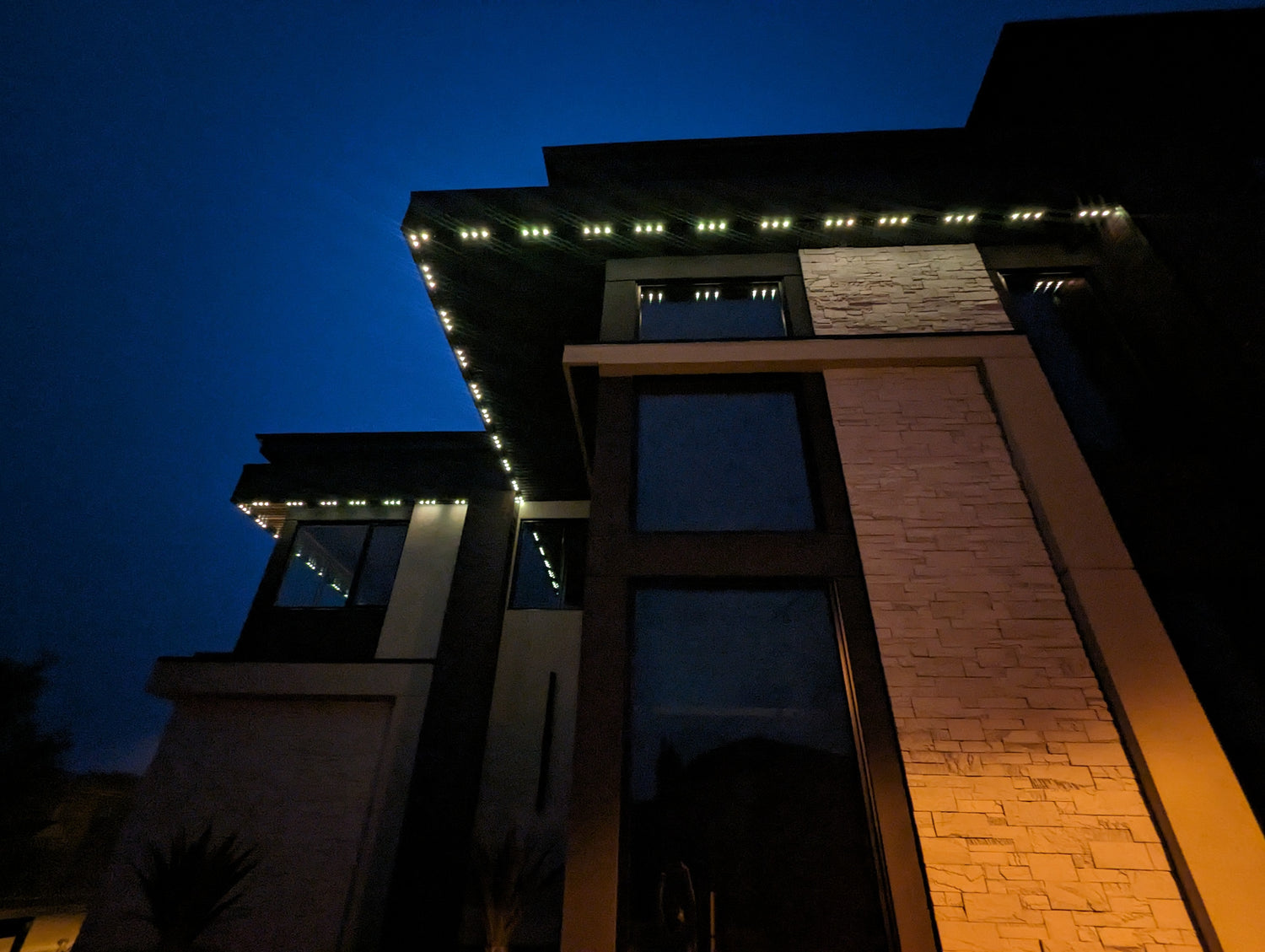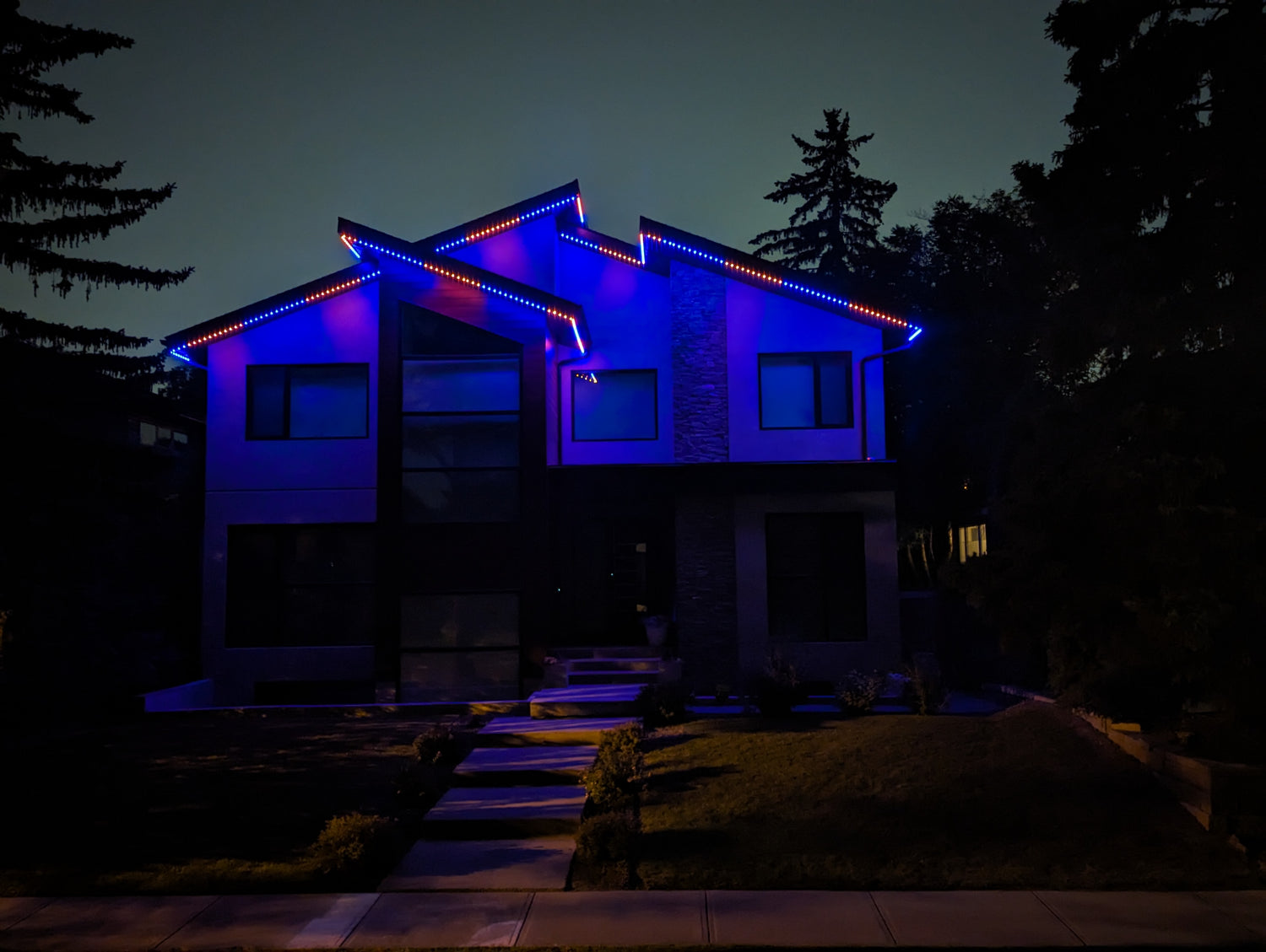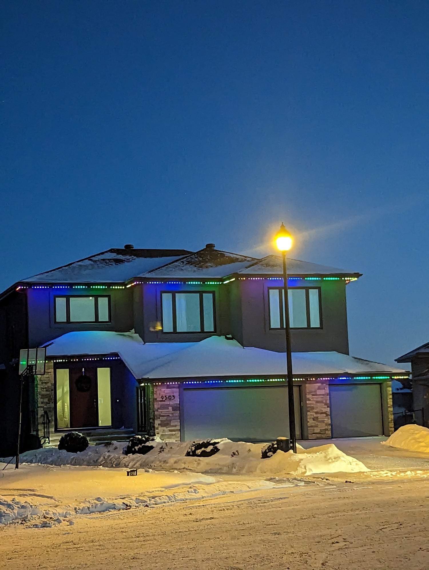 Designed and Installed by a certified electrician's supervision. LED lighting system for long-term use. An easy-to-use companion app that is cloud based, providing you access to your lighting system from anywhere in the world. Pre-programmed effects as well as a comprehensive editor that allows users to create their custom sequences. With an IP (Ingress Protection) rating of IP68 and a sturdy aluminum outer channel, the permanent holiday lighting is dust-tight and completely waterproof, ensuring it stands up to even the harshest North American winters. With our permanent holiday lighting system you get twice as many pixel LED lights to stand out for the best visual effects.